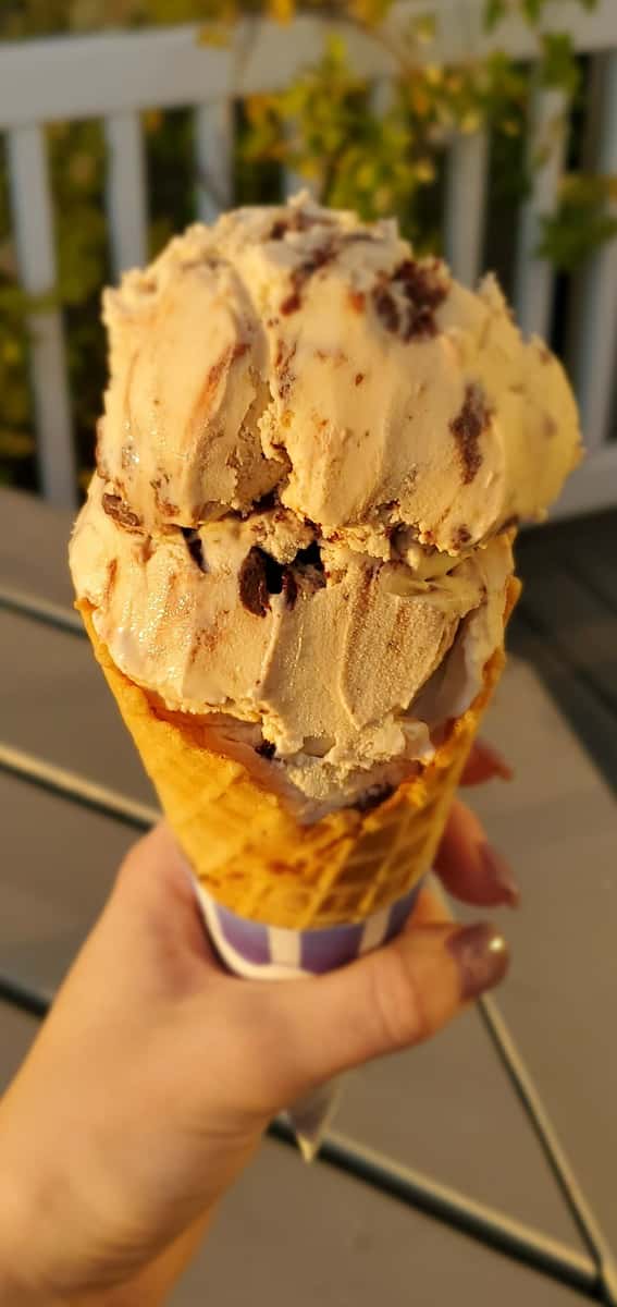 Espresso Ice Cream With Dark Chocolate Swirls Garlic Zest